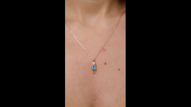 Colar em Ouro 18k com corrente 45cm e pingente Menino cravejado de esmeralda ou topázio sky e pérola.
