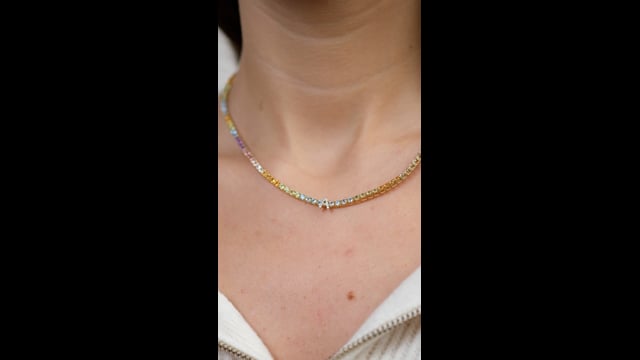 Colar em Ouro 18K cravejado de topázio Suice, peridoto, citrino, safira branca, quartzo rosa, turmalina rosa clara, turmalina rosa escuro e ametista.